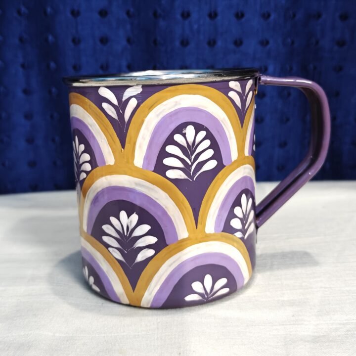 Hand-Painted Purple Arch Enamel Coffee Mug – Modern Folk Edition