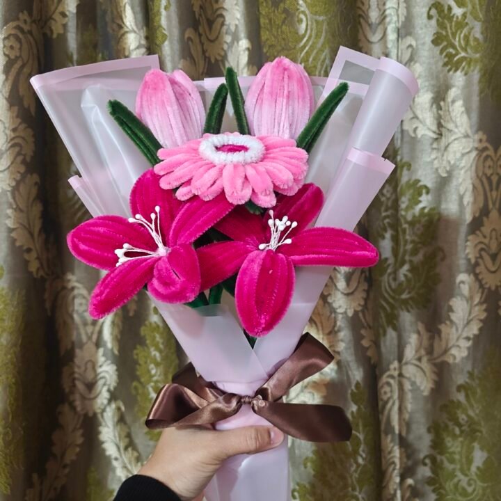 Handcrafted Velvet Blossom Bouquet – Pink Elegance Edition