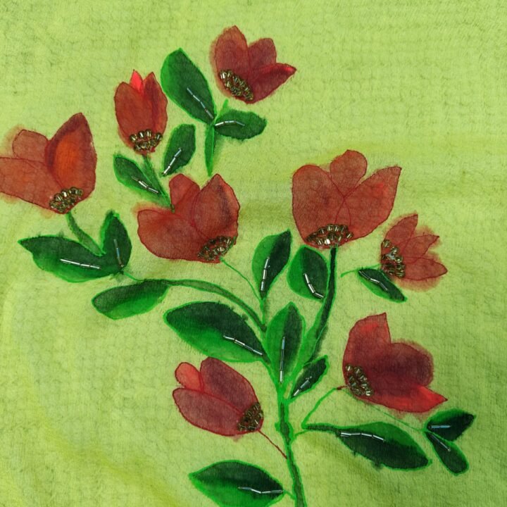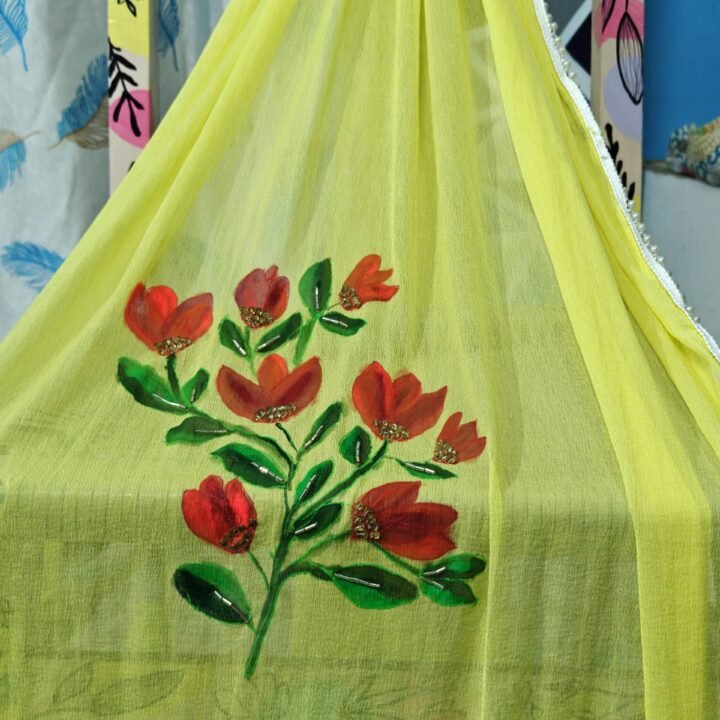 Add a touch of elegance to your wardrobe with this beautifully Hand Painted Bougainville Blossams Dupatta, Each piece is uniquely hand