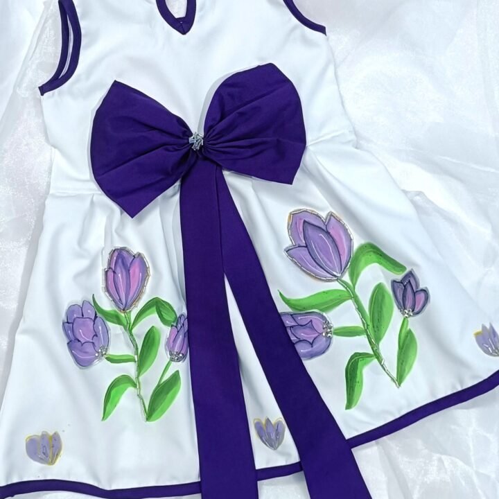 Add a touch of elegance to your wardrobe with this beautifully White and Purple Tulip Frock, Each piece is uniquely hand