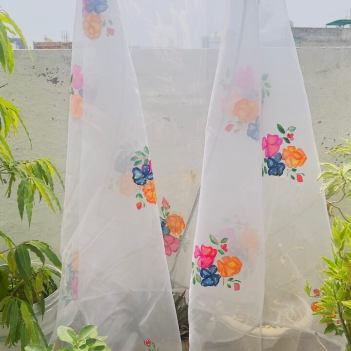 Add a touch of elegance to your wardrobe with this beautifully Pure Organza Tri- Flower Dupatta, Each piece is uniquely hand