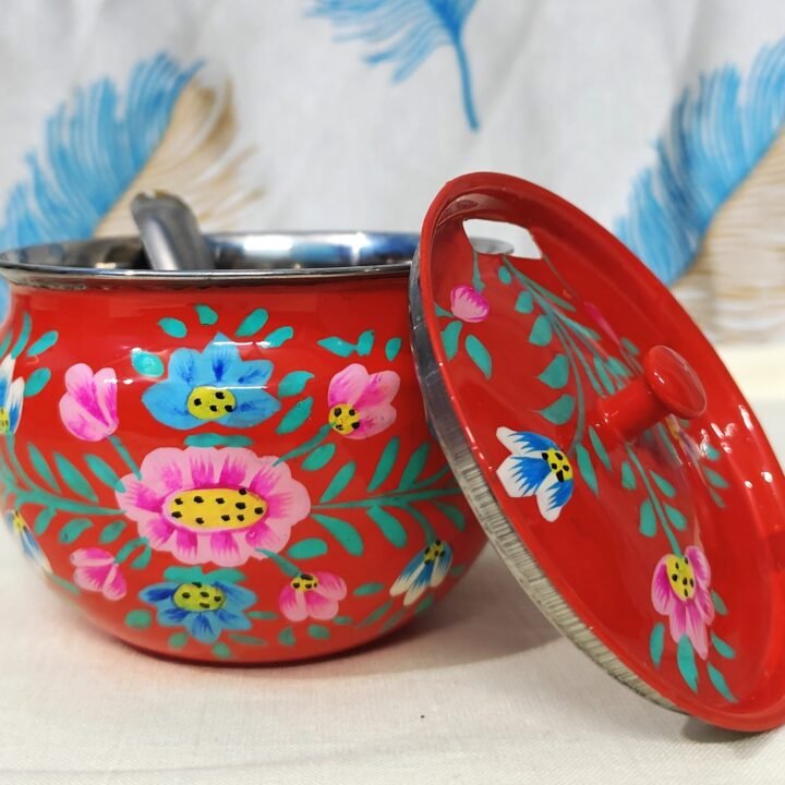 Hand-Painted Floral Sugar & Condiment Pot with Lid and Spoon
