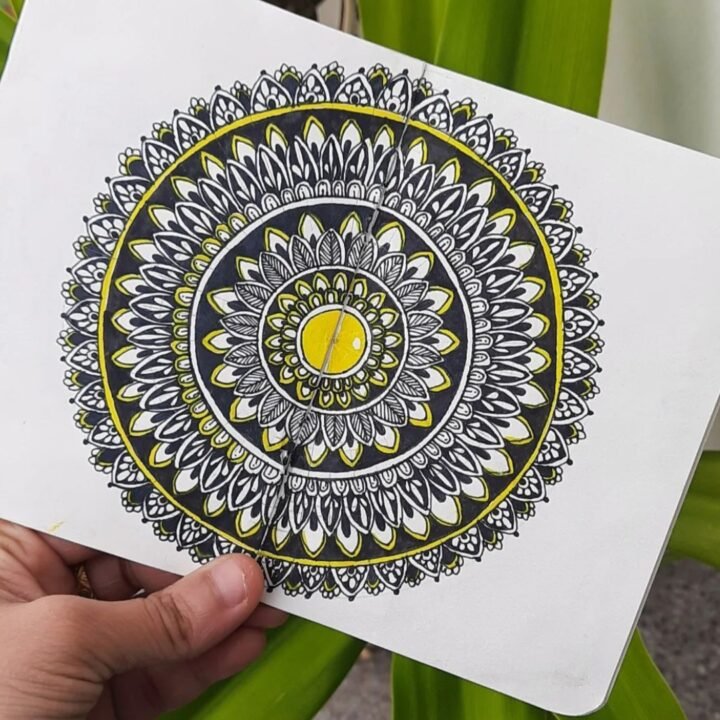 Bask in the warmth of our “Yellow Mini Mandala,” a pocket-sized marvel that encapsulates the radiance of sunshine in every
