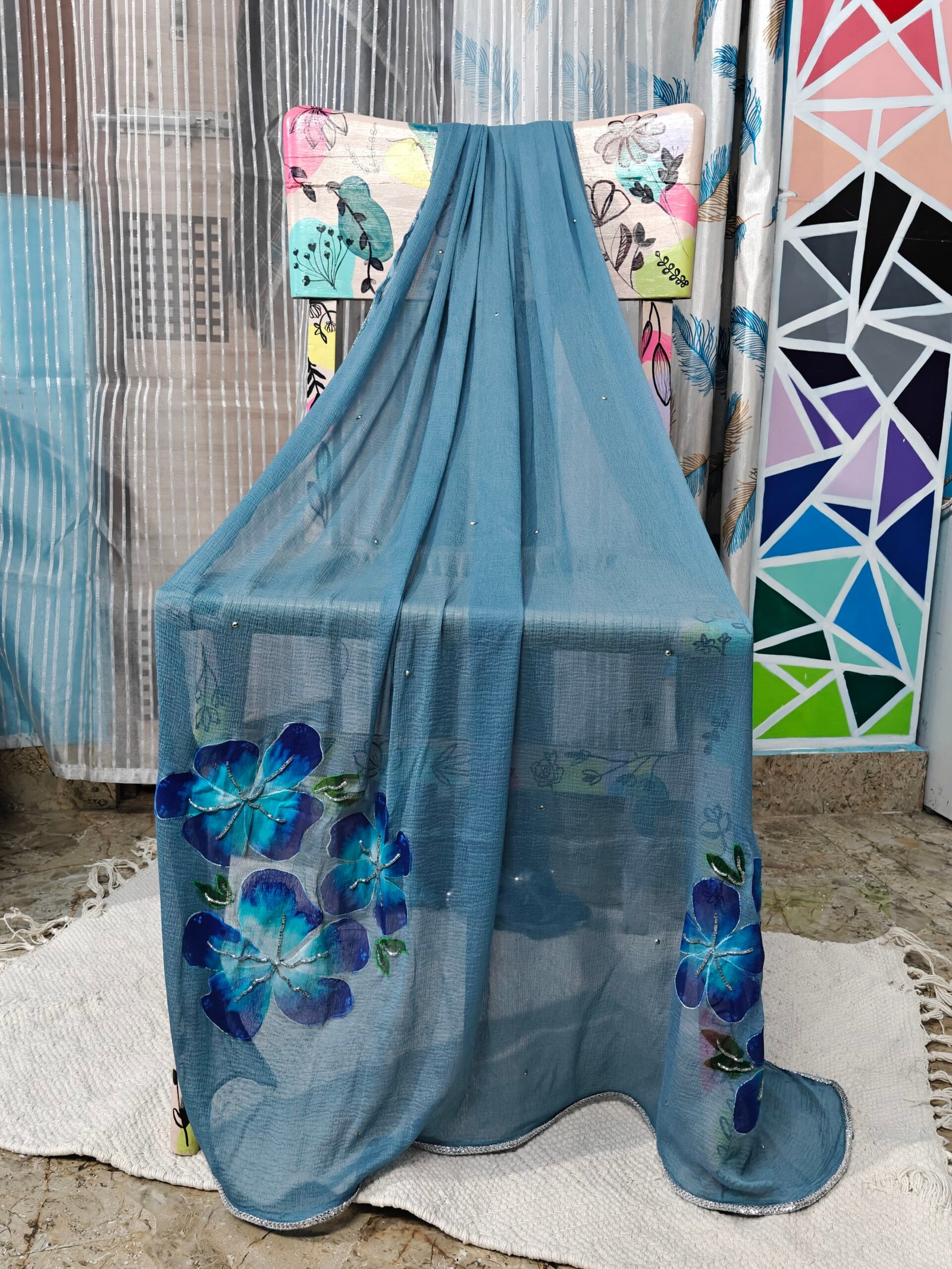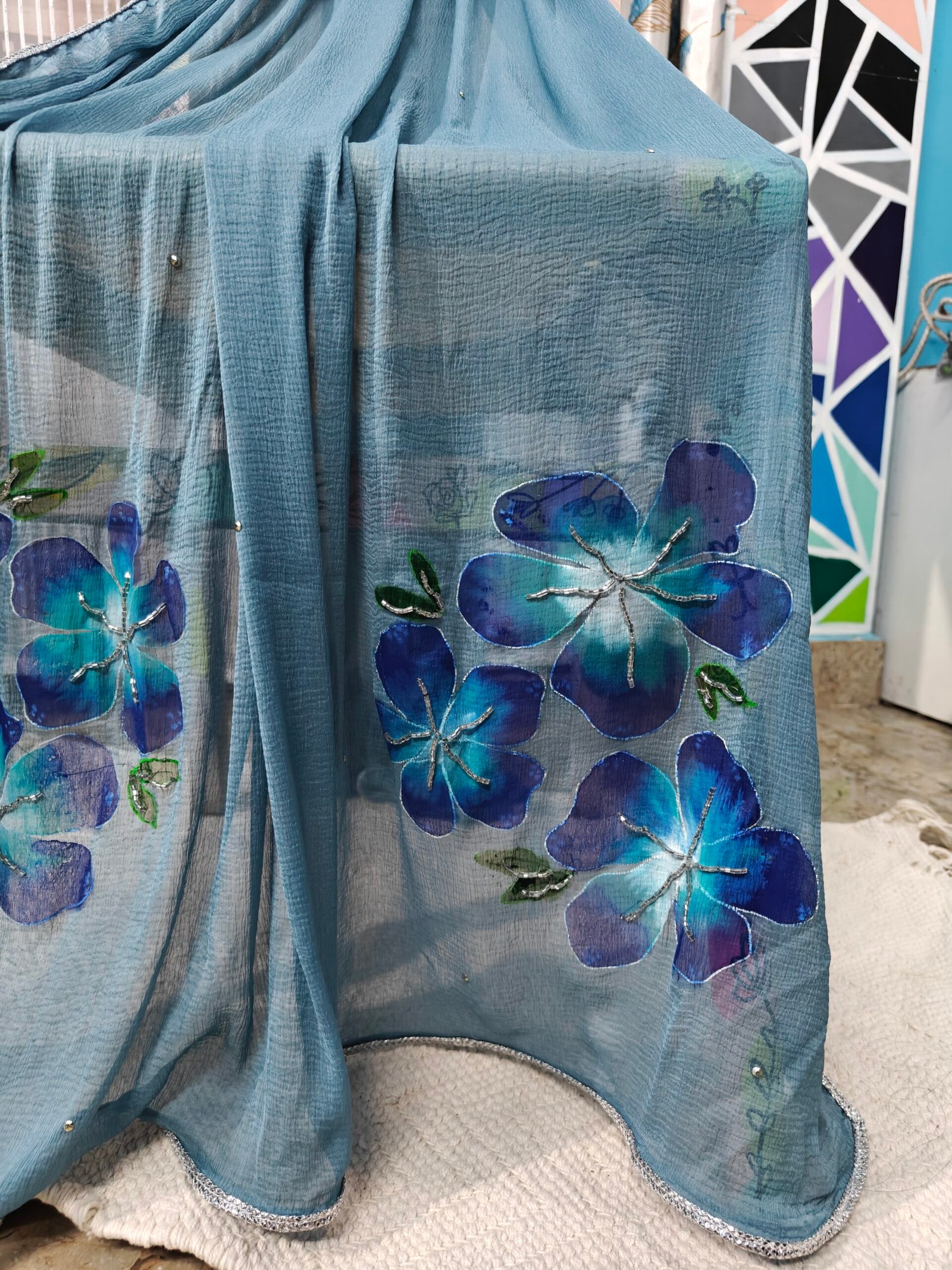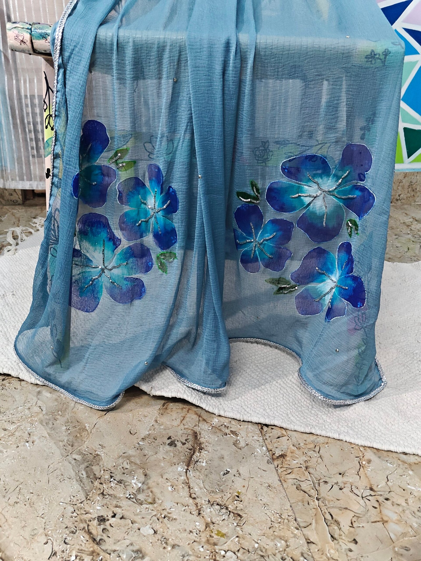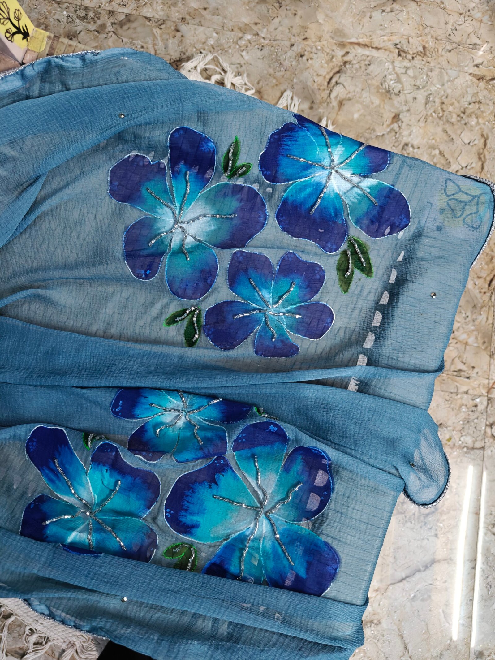 Be the first to review “Hand-Painted Floral Blue blossom Dupatta” Cancel reply