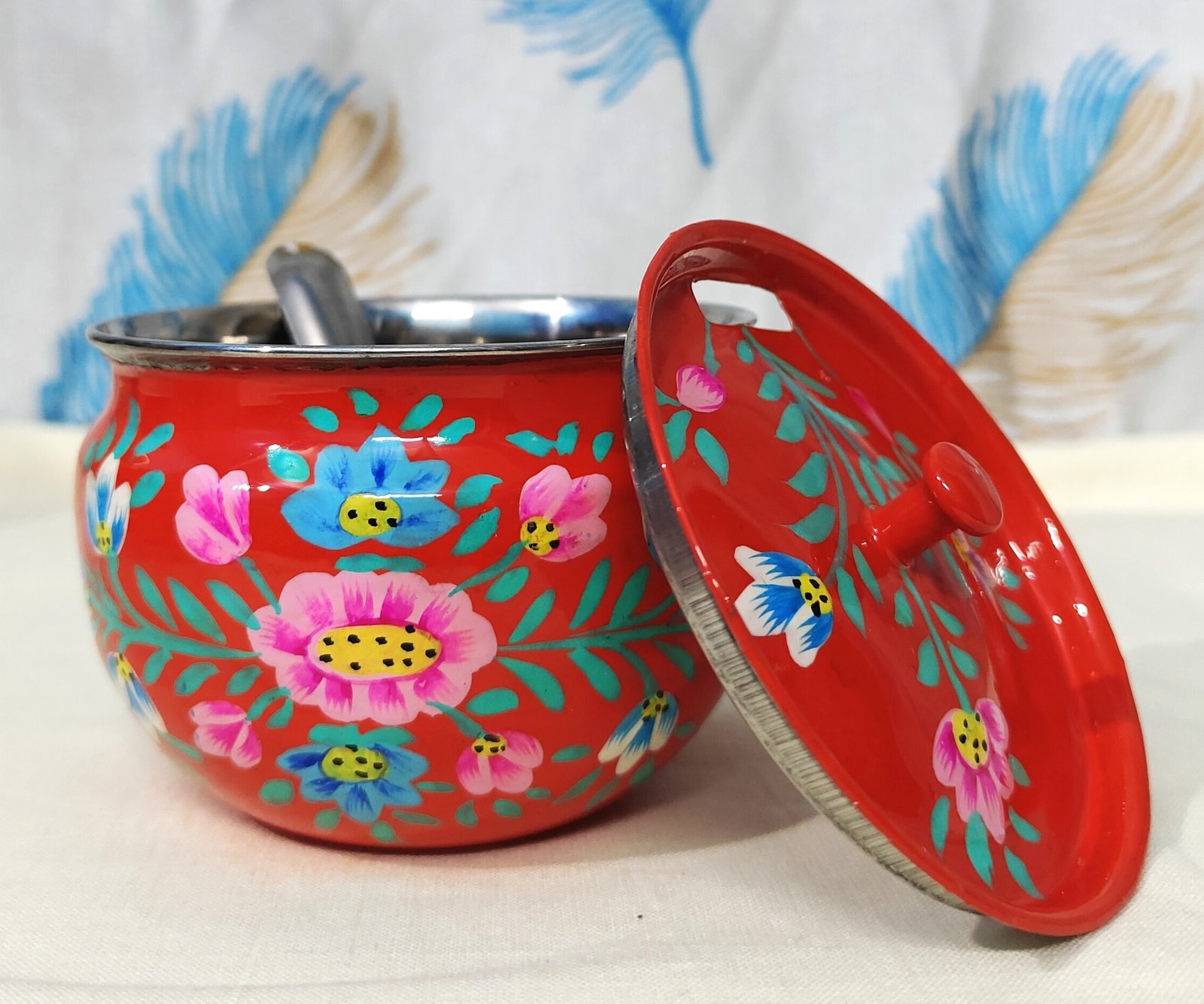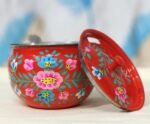 Add charm and tradition to your kitchen with this elegant Hand-Painted Floral Sugar & Condiment Pot. Designed in a rich red base with vibrant hand-painted floral motifs, this pot is a perfect blend of Indian folk art and everyday utility.