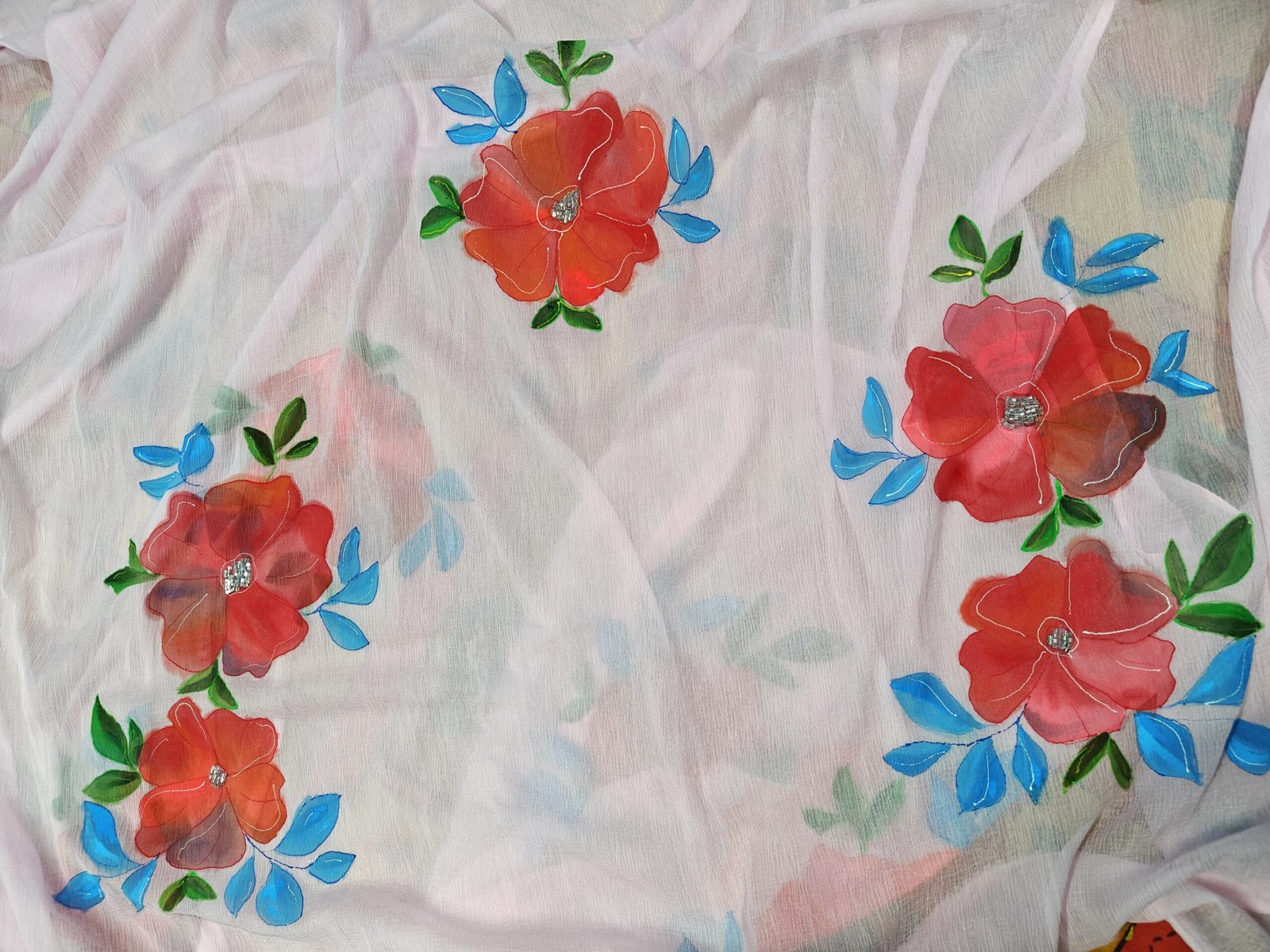 Hand Painted Chiffon dupatta with embellishments, Customisable